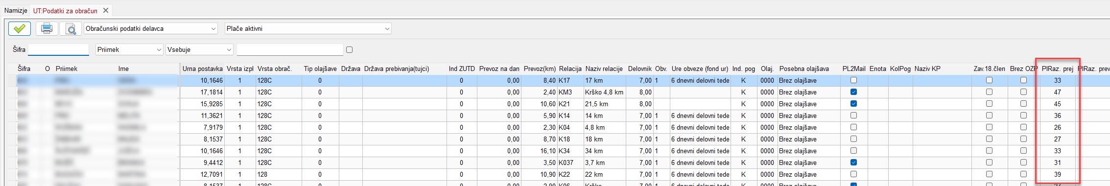 NOVOST: zaradi prenove plačnega sistema v polje Prejšnji PIRaz. prej
