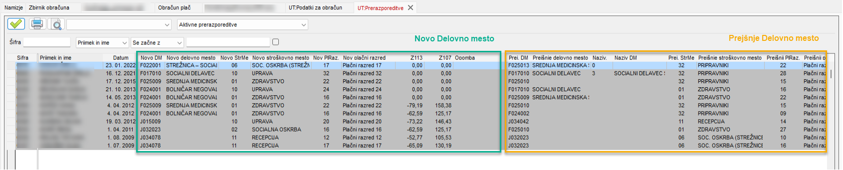 Vnesemo zaposlenega, ki se mu spreminja delovno mesto med mesecem.