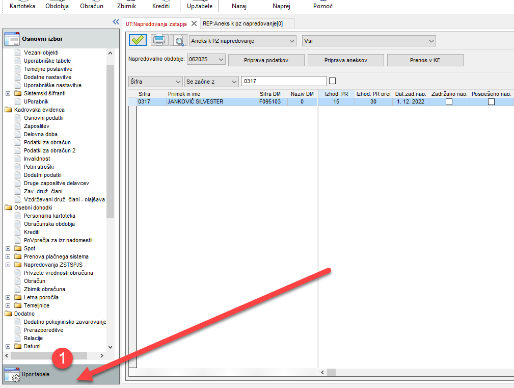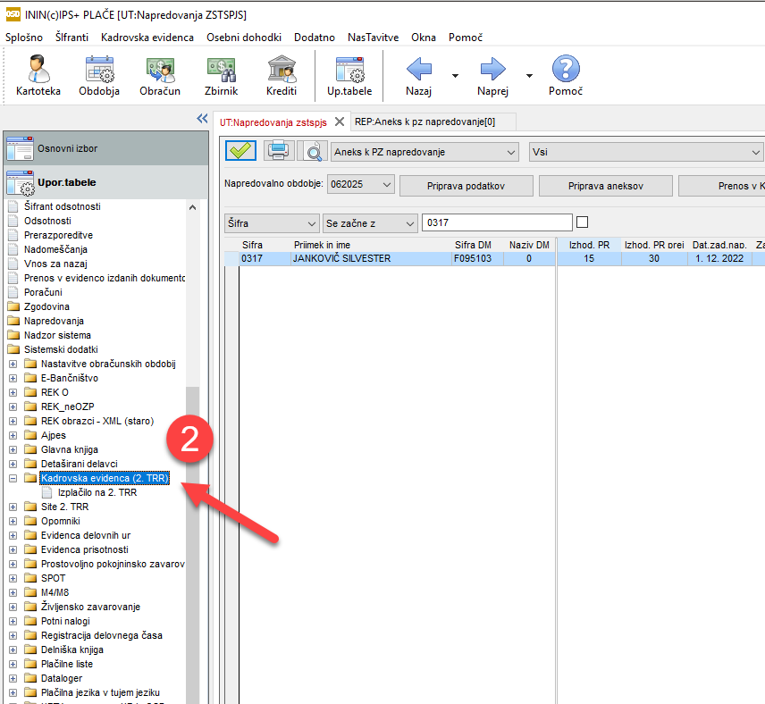 Med možnostmi poiščemo Kadrovska evdienca (2. TRR). Odpremo modul in prikaže se nam tabela za vnos podatkov. Vnesemo podatke o zaposlenemu, ki bo imel plačo nakazano na dva TRR računa.