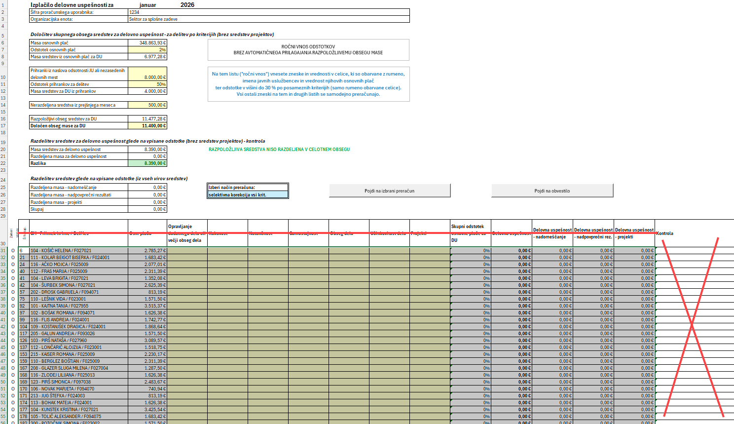 POMEMBNO: Potrebno je preveriti zaposlene, ki so zaposleni na dveh delovnih mestih, prerazporeditve (zaposlene, ki so med mesecem zamenjali delovno mesto oz. plačilni razred), zaposlene, ki niso 8-urni, ter zaposlene, ki imajo več različnih šifer.