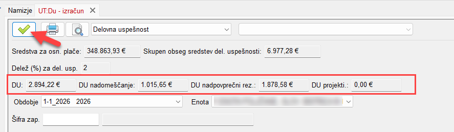 Sedaj sledi postopek Prenosa DU v obračun plač. Navodila najdete tukaj > Prenos DU v obračun plač.